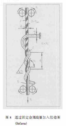 Fritsche在位于固定假捻裝置之前的,用于粗梳毛紡環(huán)錠細(xì)紗機(jī)牽伸區(qū)的Befama螺紋上的牽伸須條中得到了大約100捻/m的假捻。