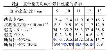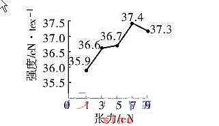 近年來,隨著新型紡紗工藝技術的發(fā)展,復合紗線產品也隨之大量涌現。其中,利用滌綸長絲和滌綸短纖紗通過復合工藝生產的高檔滌綸縫紉線,市場前景廣闊。這種新型滌綸縫紉線彌補了長絲和短纖紗的缺陷,較大地提高了縫紉線的強度,能適應高速縫紉機使用,并在縫紉質地較厚的服裝時,不會發(fā)生斷線現象。 復合高檔縫紉線按其復合方法可分為包芯線和并捻線等類型。包芯線是由短纖維包覆長絲形成皮芯結構的包芯紗(在環(huán)錠細紗機上增添包芯紗裝置進行生產)經并紗捻線而成,而并捻線是由長絲和短纖紗直接經并紗捻線而成。并捻線與包芯線相比,具有如下特點: ?。?)細紗設備不需更新,操作方便,并可減少用工 (2)可使用常規(guī)的并捻設備進行生產 ?。?)加工費用低 ?。?)可控制長絲和短纖紗的并合比例 (5)不會出現包芯線常見的空芯、露芯、空鞘等紗疵?!? 因此,其產品更加多樣化,經濟效益也更加顯著。 1 試驗材料、設備型號和并捻張力 1.1 試驗材料及設備 并捻復合紗線采用的滌綸長絲和滌綸短纖維紗規(guī)格見表 1。采用 FA702 型并紗機、FA721 型捻線機。 1.2 并捻張力 由于 S 捻向的滌綸短纖紗在 Z 向加捻的前期會出現退捻伸長,而無捻滌綸長絲加捻后則會產生捻縮。因此,Z 向并捻時應加大滌綸短纖維紗的張力,減小長絲的張力。試驗中并捻張力的配置見表 2?!? 2 試驗與分析 2.1 并捻張力對復合紗線強伸特性的影響 無捻長絲和 S 捻短纖紗在按 Z 向并捻時的張力配置及對應的復合紗線的強伸特性見表 3,其復合捻度為 120 捻 /10 cm?!?nbsp; 復合紗線的強度與長絲并捻張力之間的關系見圖 1。 由圖 1 可知:(1)隨著滌綸長絲并捻張力的增大,復合紗線的斷裂強度基本呈現先增大后減小的趨勢 (2)當兩組分同時斷裂時,成紗斷裂強度達到最大值。 圖1 復合紗線的強度與長絲并捻張力之間的關系 2.2 并捻捻度對復合紗線強伸性能的影響 滌綸長絲并捻張力為 5 cN,滌綸短纖紗并捻張力為 15 cN 時,Z 向并捻復合紗線的捻度與成紗的強伸性能指標見表 4。 由表 4 可知隨著成紗捻度的增大,復合紗線的斷裂強度呈先增大后減小的變化規(guī)律,與常規(guī)并捻紗線相一致。由于長絲和短纖紗組成的并捻復合紗線也存在一個臨界捻度,可通過采取適當的捻度或捻比,來獲得較高的成紗強度?!? 性能的影響試驗條件同上,試驗結果見表 5。 由表 5知,隨著滌綸長絲含量的增加,復合紗線的強度隨之增大。 2.4 不同復合捻向對復合紗線的影響 異向并捻紗線中,兩個組分分層現象非常明顯,其中滌綸短纖紗呈螺旋線狀包覆于滌綸長絲的外層,滌綸長絲呈直線狀位于復合紗線的中心 而同向并捻紗線,長絲和短纖紗的復合結構比較均勻,毛羽也較少。 同向加捻和異向加捻時,復合紗線的拉伸斷裂曲線形狀有所變化,但差異不大。同向加捻的復合紗線有較低的模量、較大的斷裂伸長率和稍高的斷裂強度。 3 結語 (1)選擇并捻過程中長絲和短纖紗的合理并捻張力配置,有助于緩解它們的結構和性能差異對復合紗線的外觀和性能指標的不利影響?!? ?。?)選取適當的捻度或捻比,將會提高復合紗線的強度等力學性能。 ?。?)選取不同并合比例的長絲和短纖紗,可以獲得不同用途的復合紗線。 ?。?)不同于一般短纖紗線的包芯紗線的異向加捻,采用同向加捻,將獲得外觀和性能更佳的并捻復合紗線?!? ?。?)生產并捻滌綸縫紉線的過程中,掌握以上要點,減少并捻復合紗線特有的紗疵,才能保證長絲和短纖紗的染色一致性。