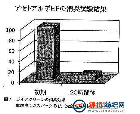 包括汗味、體臭、煙草氣味等)。如圖所示,100%合成纖維窗簾經(jīng)光觸媒加工后的消臭效果結(jié)果(采用乙醛為臭源),可以看出,加工后的織物對(duì)乙醛分解效果十分明顯。