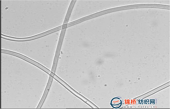 有人認(rèn)為:通過(guò)使用化學(xué)試劑區(qū)分出再生纖維素纖維(主要是指莫代爾纖維、萊賽爾纖維、竹纖維等新型再生纖維素纖維,普通粘膠纖維、銅氨纖維、醋纖、三醋纖除外)以后,再將其外觀形態(tài)(縱向形狀和橫截面形狀)與FZ/T01057.3-2007《紡織纖維鑒別試驗(yàn)方法第3部分:顯微鏡法》的附錄B中所列各種纖維的橫截面、縱面形態(tài)特征及附錄C中所列各種纖維的橫截面、縱面形態(tài)顯微照片對(duì)照,找到相符者或基本相似者對(duì)號(hào)入座,確定出是莫代爾或萊賽爾等具體再生纖維素纖維名稱,這顯然是不科學(xué)的。為了證明其不科學(xué)性,筆者通過(guò)某知名大型紡織廠找到四種莫代爾纖維,一種是臺(tái)灣產(chǎn)莫代爾纖維,一種是奧地利產(chǎn)莫代爾纖維,一種是叫紐代爾纖維,一種是莫代爾纖維,這四種莫代爾纖維都屬于再生纖維素纖維,且都叫“莫代爾纖維或紐代爾纖維”,這四種再生纖維素纖維的縱向形狀,分別見(jiàn)圖1、圖2、圖3、圖4: