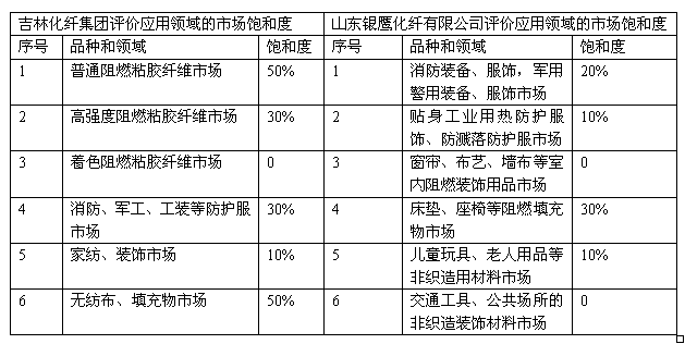 表2阻燃粘膠纖維應(yīng)用領(lǐng)域的市場飽和度情況