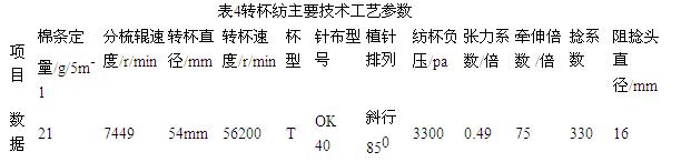 備注:試驗(yàn)條件為分梳輥速度7449r/min;紡杯速度56000r/min。轉(zhuǎn)杯直徑為54mm。