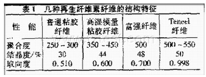 從生產(chǎn)工藝看,目前再生纖維素纖維基本可分為購(gòu)類(lèi):一類(lèi)是以粘膠纖維為代表的傳統(tǒng)型生產(chǎn)工藝,這其中包括普通粘膠纖維、高濕模量粘膠纖維、Modal纖維等;另一類(lèi)是以Lyocell纖維為代表的新型溶劑法生產(chǎn)工藝,包括英國(guó)Courtanlds公司生產(chǎn)的Tencel、奧地利Lenzing公司生產(chǎn)的lyocell、德國(guó)Akzo-Nobel公司生產(chǎn)的Newcell纖維等。從大分子結(jié)構(gòu)看,幾種再生纖維親纖維均是由纖維素大分于構(gòu)成。它們的結(jié)構(gòu)特征見(jiàn)表1。