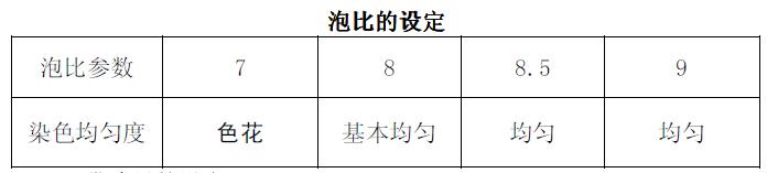 保持帶液量參數(shù)50%不變,改變泡比參數(shù)的設(shè)置,確立泡比的最佳參數(shù)。