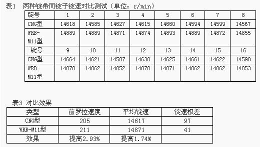 ?。?)同臺(tái)同錠同品種對(duì)比試驗(yàn),不改變細(xì)紗工藝。(前后分別采用新CNG型錠帶及新WRB-M11型齒接錠帶進(jìn)行對(duì)比試驗(yàn))
