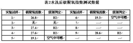 表2水洗后極限氧指數(shù)測(cè)試數(shù)據(jù)