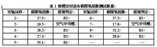 丙綸紡粘布和SMS復(fù)合布,這兩類阻燃功能母粒添加型非織造布的極限氧指數(shù),與水刺粘膠、PVA阻燃后整理非織造布的極限氧指數(shù)相比較明顯偏低,在阻燃效果級(jí)別評(píng)定中相差了一個(gè)級(jí)別。