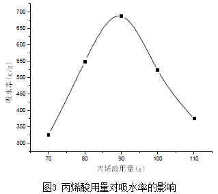 2.3丙烯酸的用量對吸水率的影響