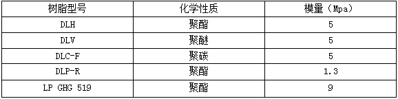 樹脂的型號(hào)及模量和化學(xué)性質(zhì)如表: