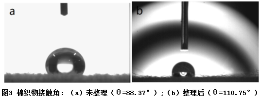采用JY-PHb接觸角測定儀測定水與棉織物的接觸角。