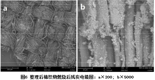 整理織物燃燒后殘?zhí)康男蚊卜治鼋Y果與熱重分析一致。