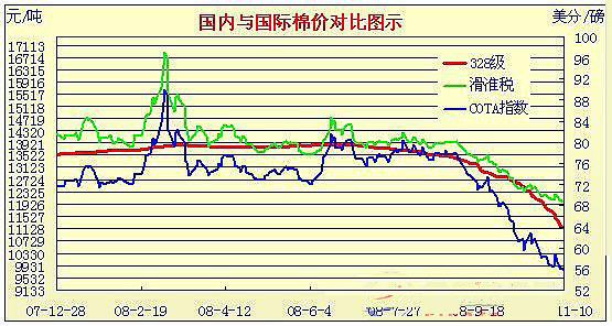 08年8月29日-08年11月10日國(guó)內(nèi)外棉價(jià)對(duì)比圖表