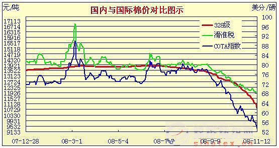 08年8月29日-08年11月12日國內(nèi)外棉價(jià)對比圖表