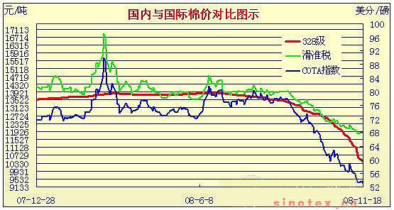 08年8月29日-08年11月18日國內(nèi)外棉價對比圖表