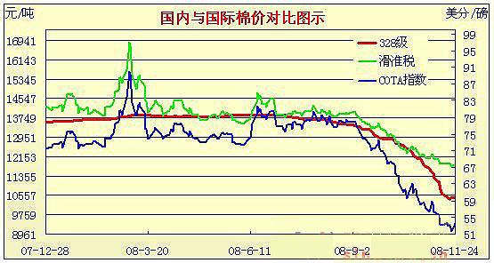 08年8月29日-08年11月24日國內(nèi)外棉價(jià)對比圖表