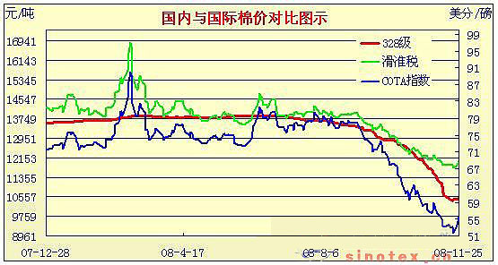 08年8月29日-08年11月25日國(guó)內(nèi)外棉價(jià)對(duì)比圖表