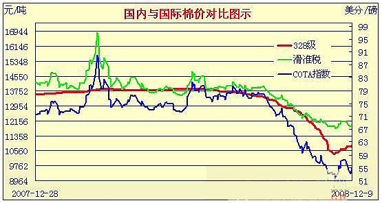 08年10月31日-08年12月9日國(guó)內(nèi)外棉價(jià)對(duì)比圖表