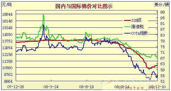 08年10月31日-08年12月10日國內(nèi)外棉價(jià)對比圖表