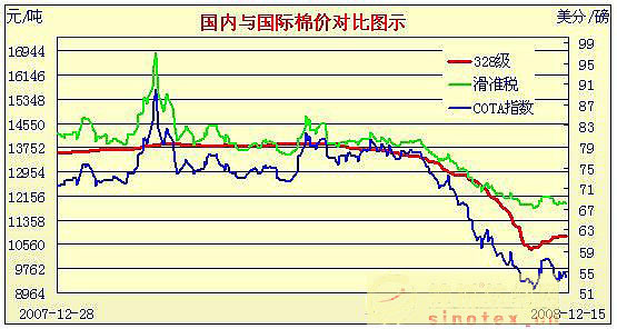 08年10月31日-08年12月15日國內外棉價對比圖表