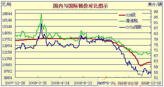 08年10月31日-08年12月16日國內(nèi)外棉價對比圖表