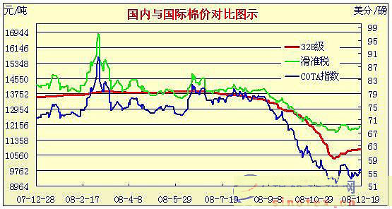 08年10月31日-08年12月19日國(guó)內(nèi)外棉價(jià)對(duì)比圖表