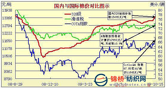 國(guó)內(nèi)外棉價(jià)對(duì)比圖表(9月30日-10月15日)