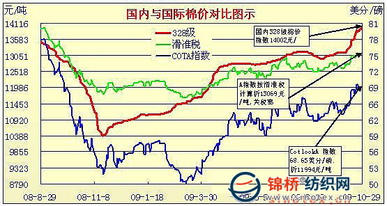 國(guó)內(nèi)外棉價(jià)對(duì)比圖表(9月30日-10月30日)