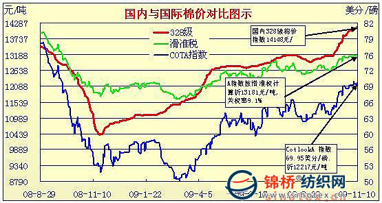 國內(nèi)外棉價(jià)對比圖表(9月30日-11月11日)