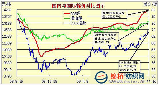 錦橋紡織網(wǎng)—資訊頻道> 棉花信息> cotlook>正文 國內(nèi)外棉價對比圖表(9月30日-11月16日)