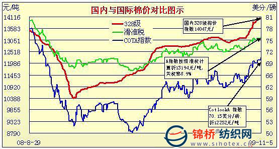 錦橋紡織網(wǎng)—資訊頻道> 棉花信息> cotlook>正文 國內(nèi)外棉價對比圖表(9月30日-11月5日)