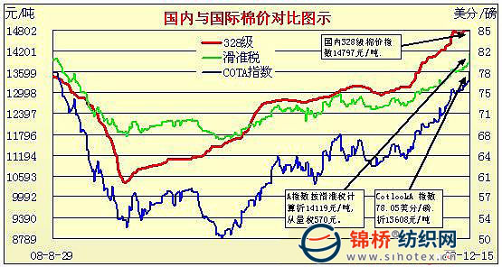 錦橋紡織網(wǎng)—資訊頻道> 棉花信息> cotlook>正文 國內(nèi)外棉價對比圖表——國際棉價大漲(12-15)