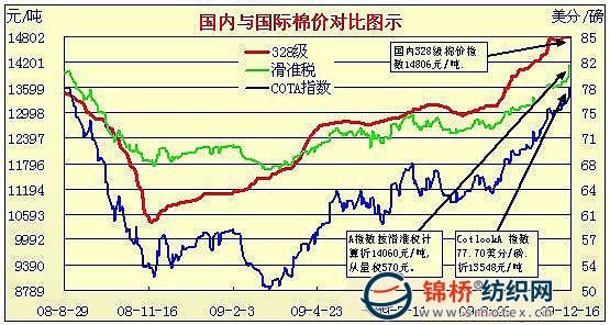 錦橋紡織網(wǎng)—資訊頻道> 棉花信息> cotlook>正文 國內(nèi)外棉價對比圖表(10.30-12.16)