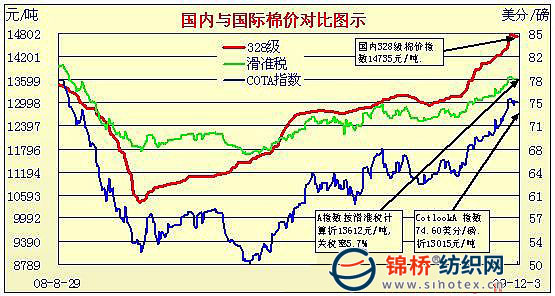 錦橋紡織網(wǎng)—資訊頻道> 棉花信息> cotlook>正文 國內(nèi)外棉價對比圖表(10月30日-12月3日)