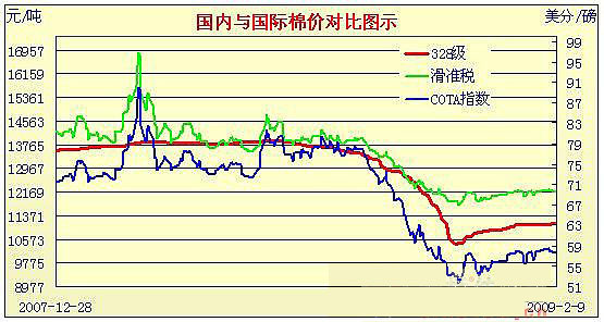 08年12月31日-09年2月9日國(guó)內(nèi)外棉價(jià)對(duì)比圖表