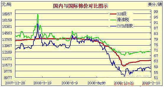 08年12月31日-09年2月10日國內(nèi)外棉價對比圖表