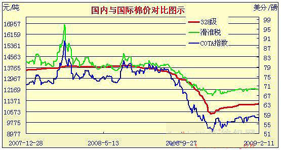 08年12月31日-09年2月11日國內(nèi)外棉價對比圖表
