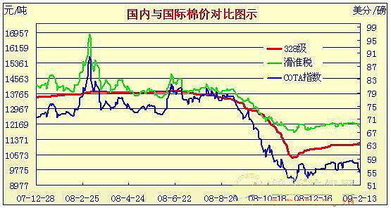 08年12月31日-09年2月13日國內(nèi)外棉價對比圖表
