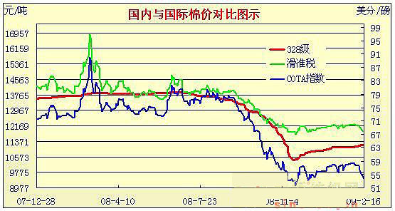 08年12月31日-09年2月16日國(guó)內(nèi)外棉價(jià)對(duì)比圖表