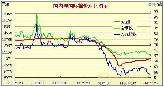 錦橋紡織網(wǎng)—資訊頻道> 棉花信息> cotlook>正文 08年12月31日-09年2月26日國內(nèi)外棉價對比圖表