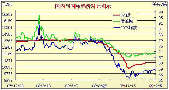 08年12月31日-09年2月5日國內(nèi)外棉價對比圖表