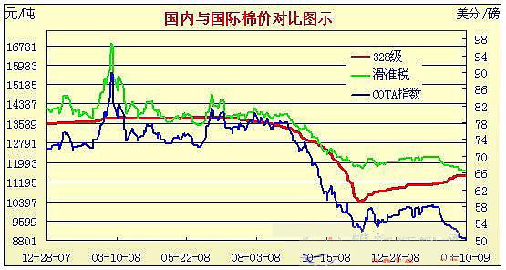 09年2月2日-09年3月10日國內(nèi)外棉價對比圖表