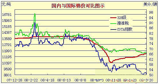 09年2月2日-09年3月20日國內(nèi)外棉價對比圖表