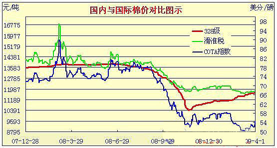 09年3月2日-09年4月1日國(guó)內(nèi)外棉價(jià)對(duì)比圖表