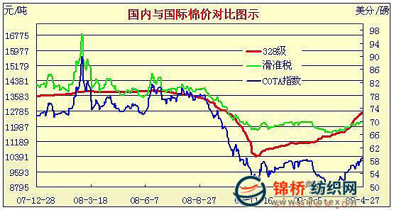 09年3月2日-09年4月27日國(guó)內(nèi)外棉價(jià)對(duì)比圖表