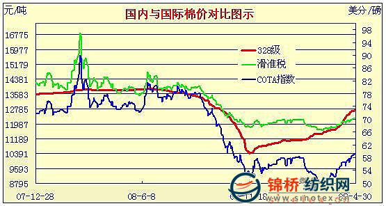 09年3月2日-09年4月30日國(guó)內(nèi)外棉價(jià)對(duì)比圖表