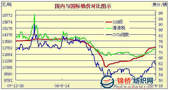 09年3月2日-09年5月18日國(guó)內(nèi)外棉價(jià)對(duì)比圖表