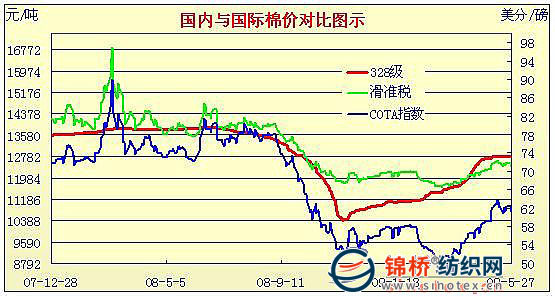 09年3月2日-09年5月27日國(guó)內(nèi)外棉價(jià)對(duì)比圖表