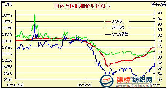 09年3月2日-09年5月5日國(guó)內(nèi)外棉價(jià)對(duì)比圖表