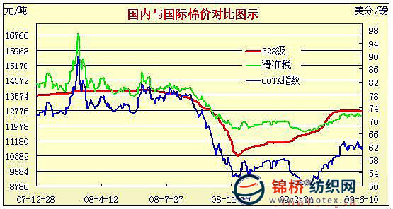 09年3月2日-09年6月10日國(guó)內(nèi)外棉價(jià)對(duì)比圖表
