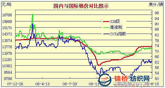 09年3月2日-09年6月15日國內(nèi)外棉價對比圖表